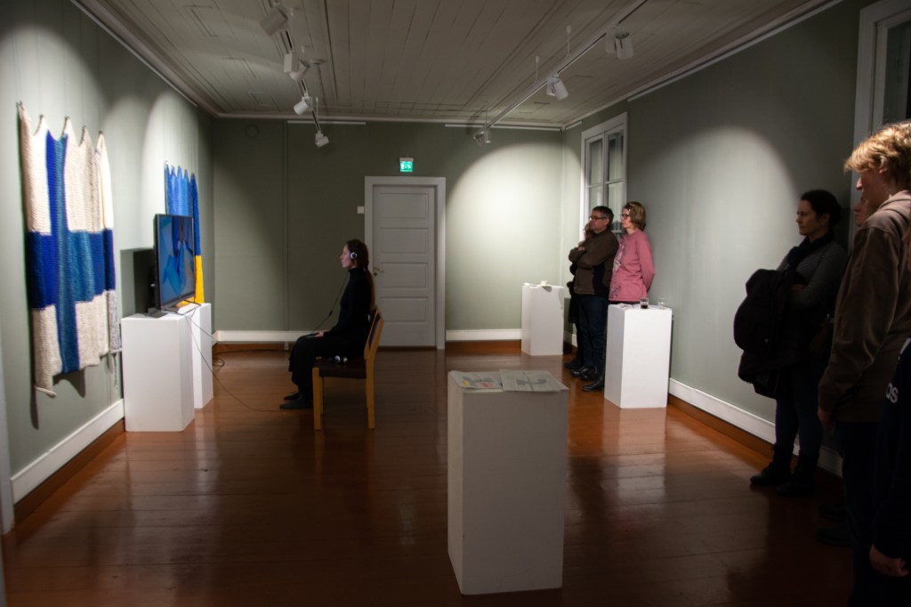 ZERO LINE is a continuation of the RED UTOPIA project Maryna made in Munich. The performance was preceded by the one month process of knitting Finnish and Ukrainian flags, which was recorded on video.