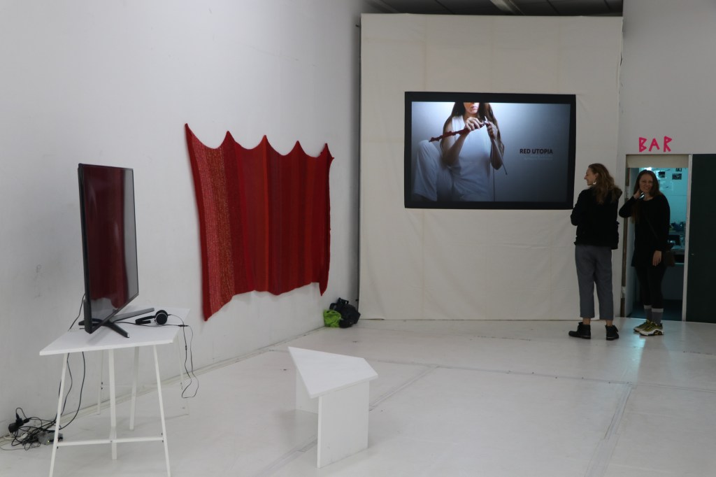 Every day began from August 24 – Independence day of Ukraine – Maryna was knitting the red flag in all shades of red, which was a preparation for the performance RED UTOPIA. Also on this day, she planted marigold flower seeds, which are folk flowers for Ukrainians. Maryna spent 77 hours knitting the flag in 22 days.