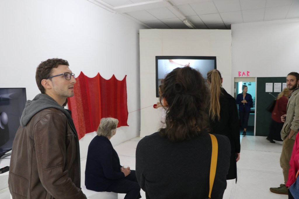 She filmed the knitting process on camera. She did a performance, winding the flag into a ball in parallel with the film about how she knitted the flag.